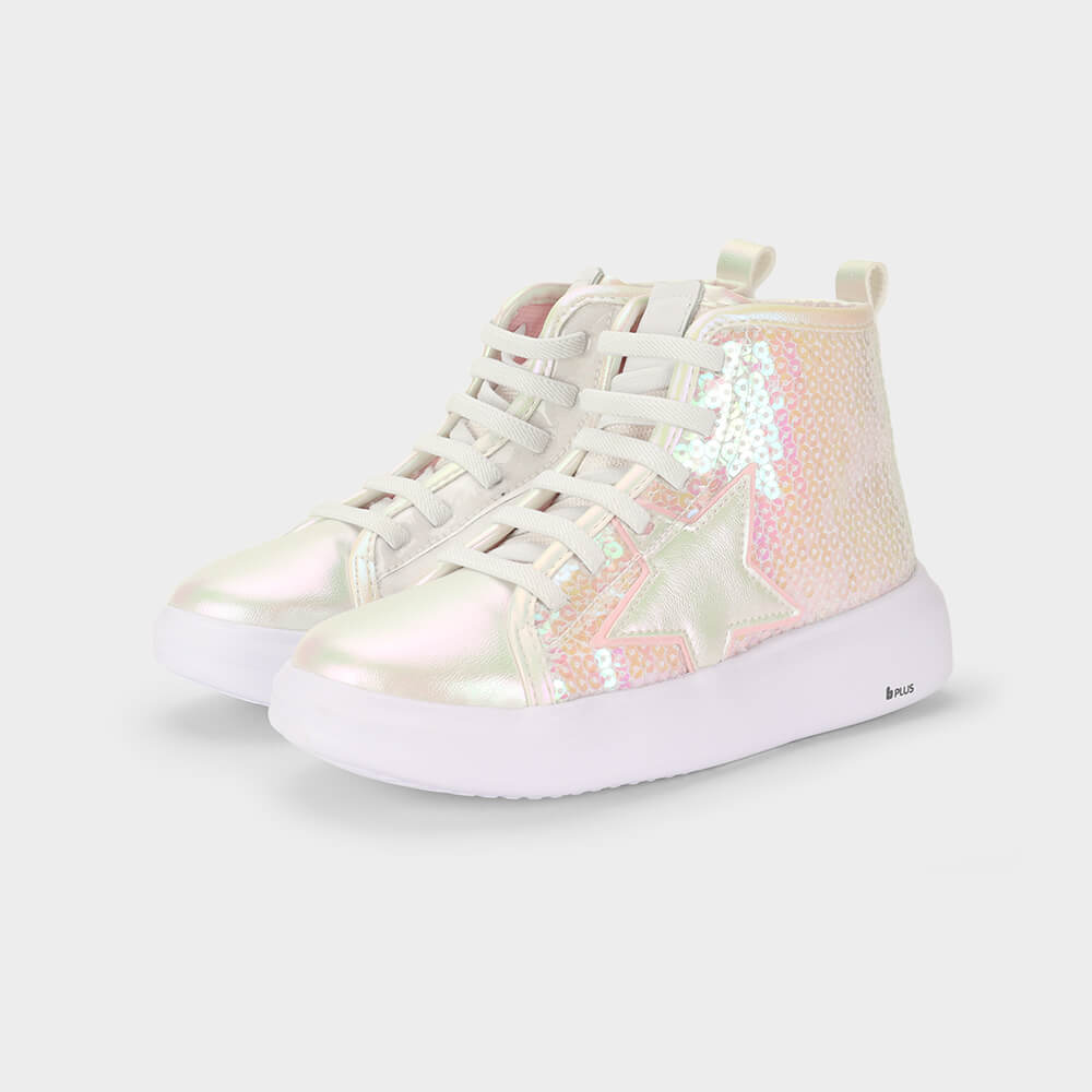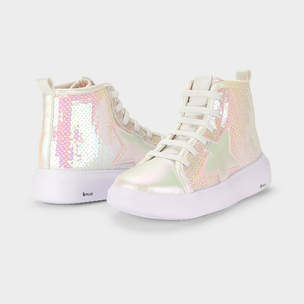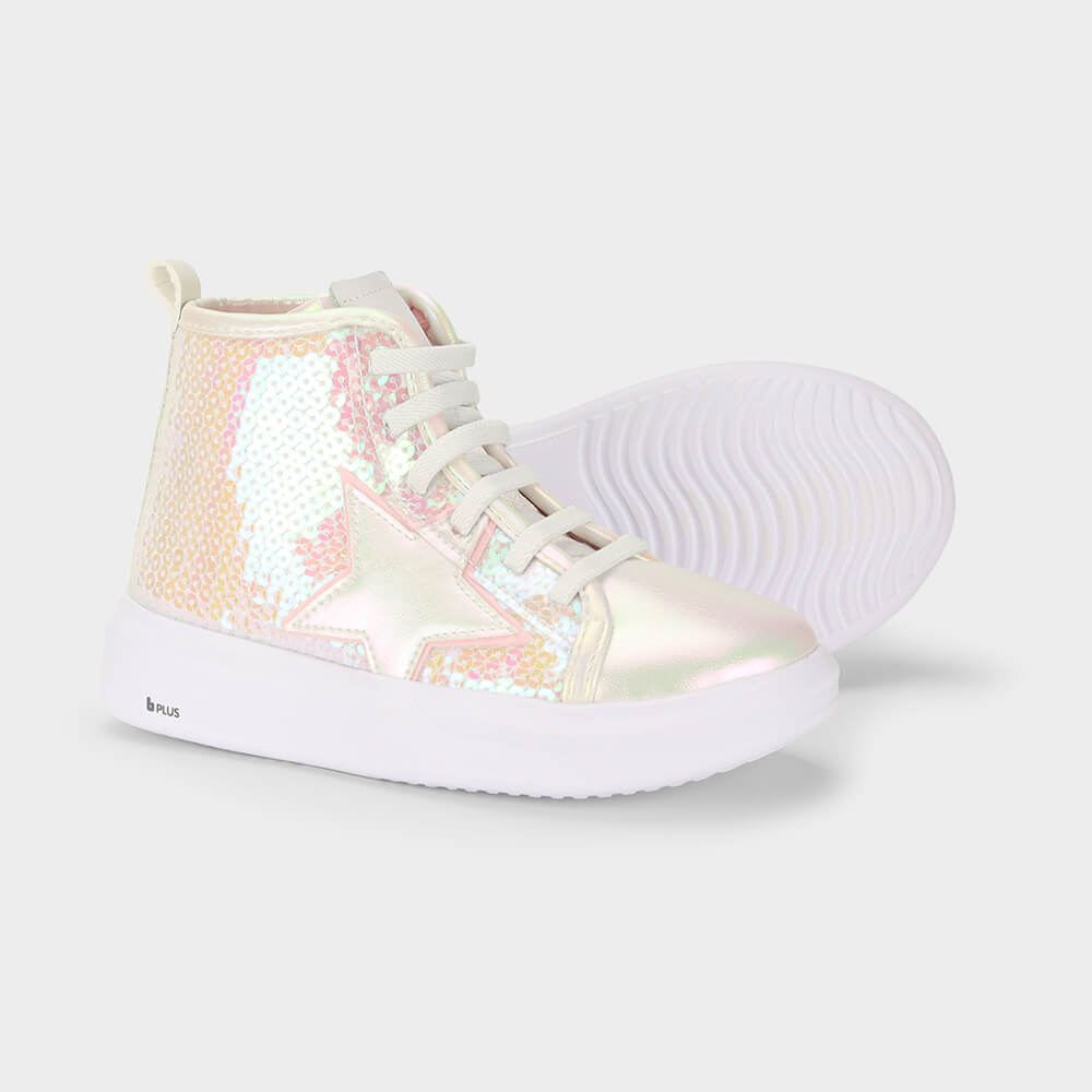 Abotinado Infantil Bibi Glam Branco Perolizado de Lantejoulas