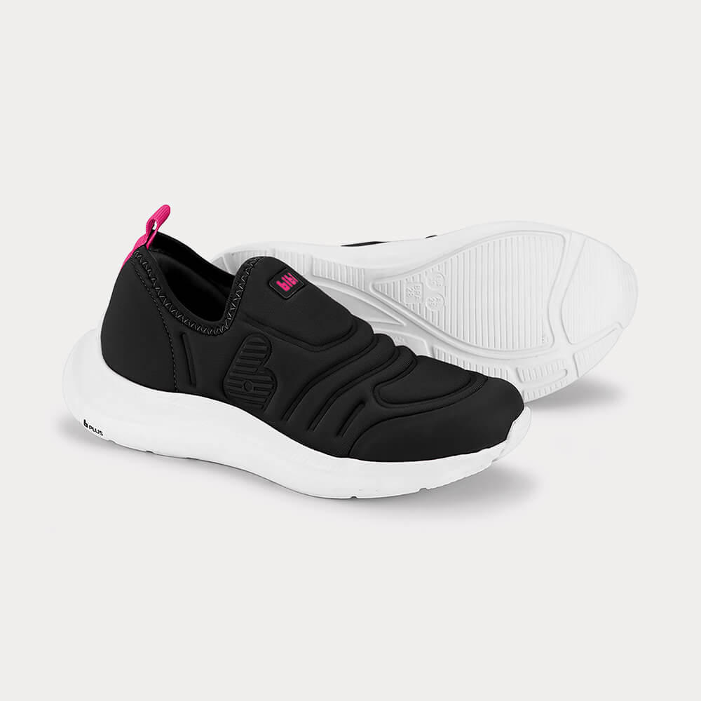 Calçados livres de cadarços e amarrações, confeccionados com materiais que se ajustam no pezinho e facilitam o calce.