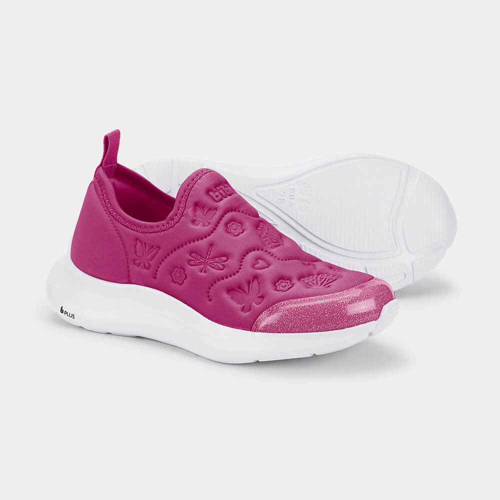 Calçados livres de cadarços e amarrações, confeccionados com materiais que se ajustam no pezinho e facilitam o calce.