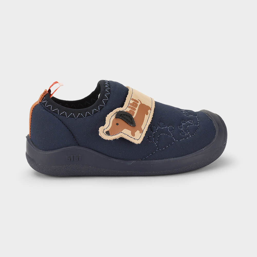 Calçados livres de cadarços e amarrações, confeccionados com materiais que se ajustam no pezinho e facilitam o calce.