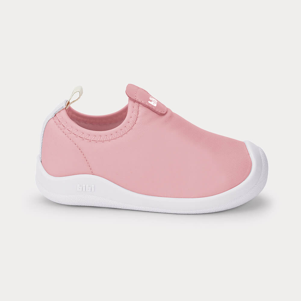 Calçados livres de cadarços e amarrações, confeccionados com materiais que se ajustam no pezinho e facilitam o calce.
