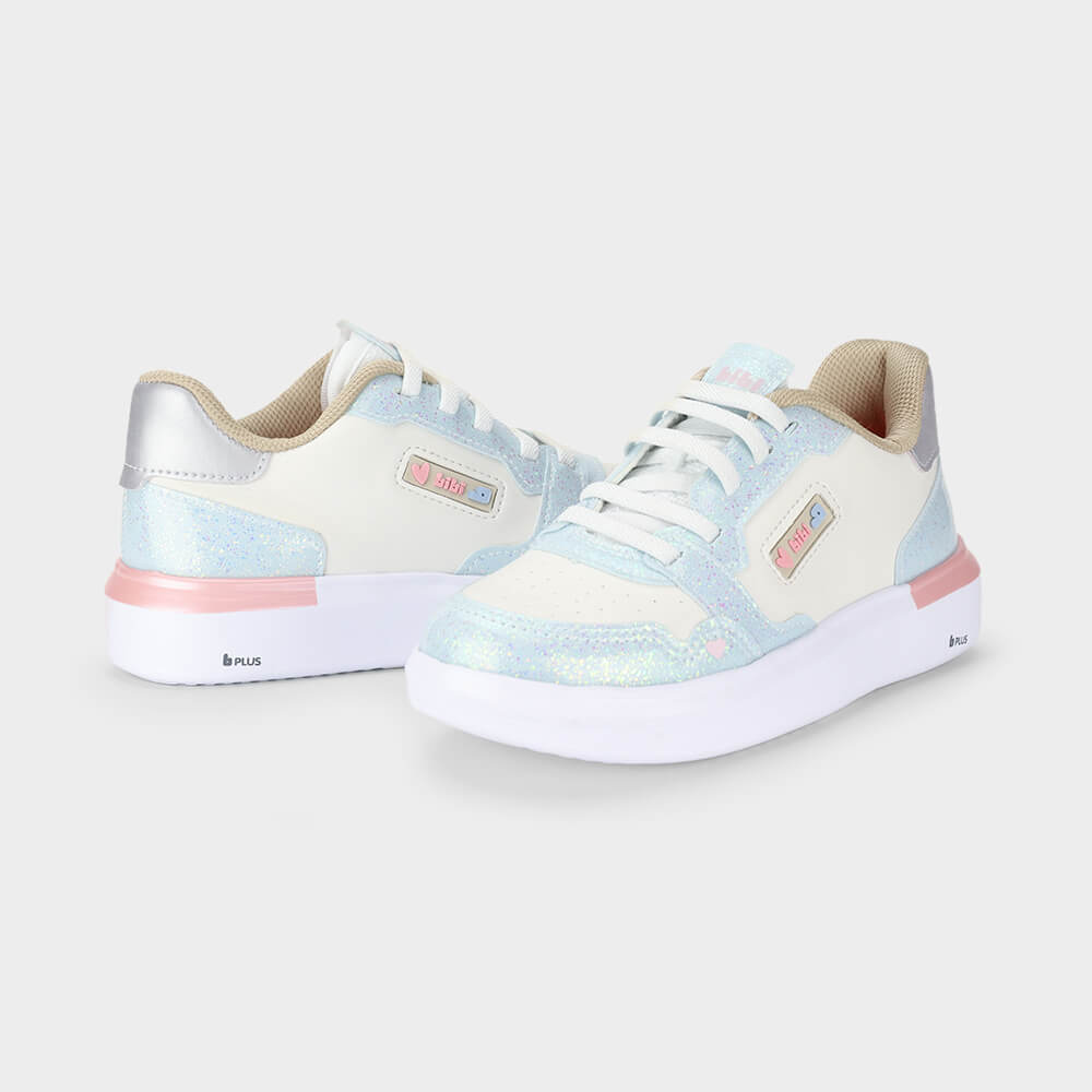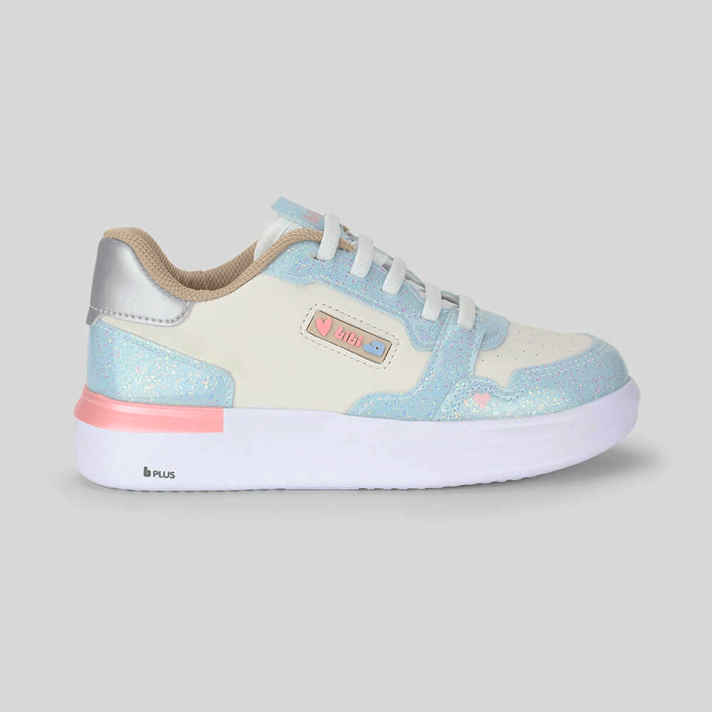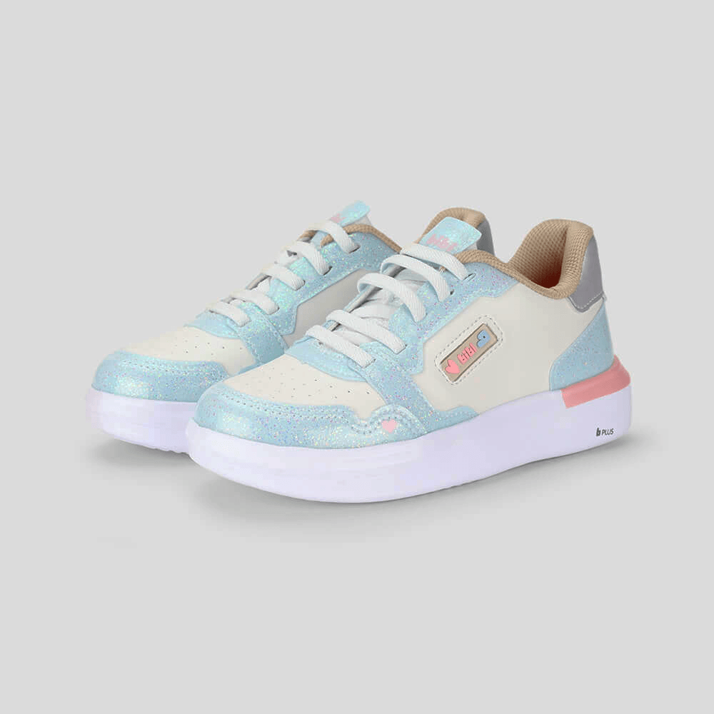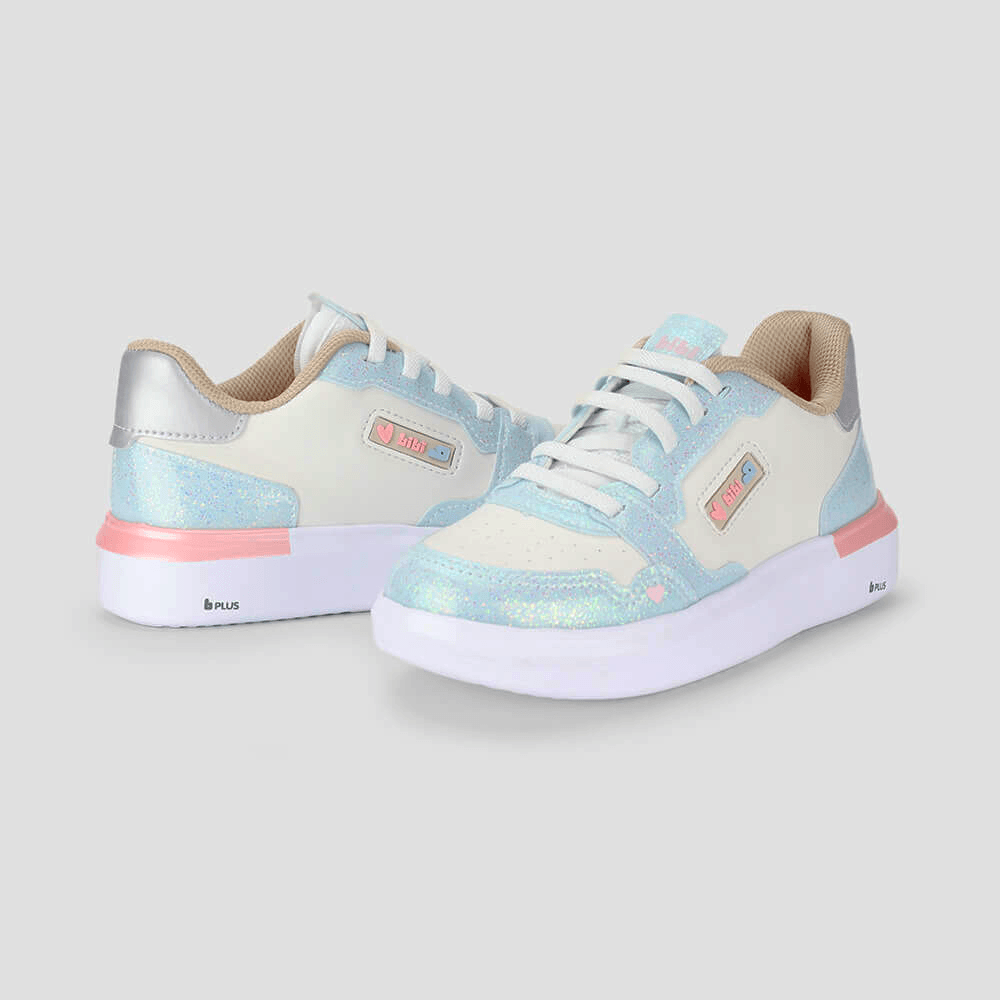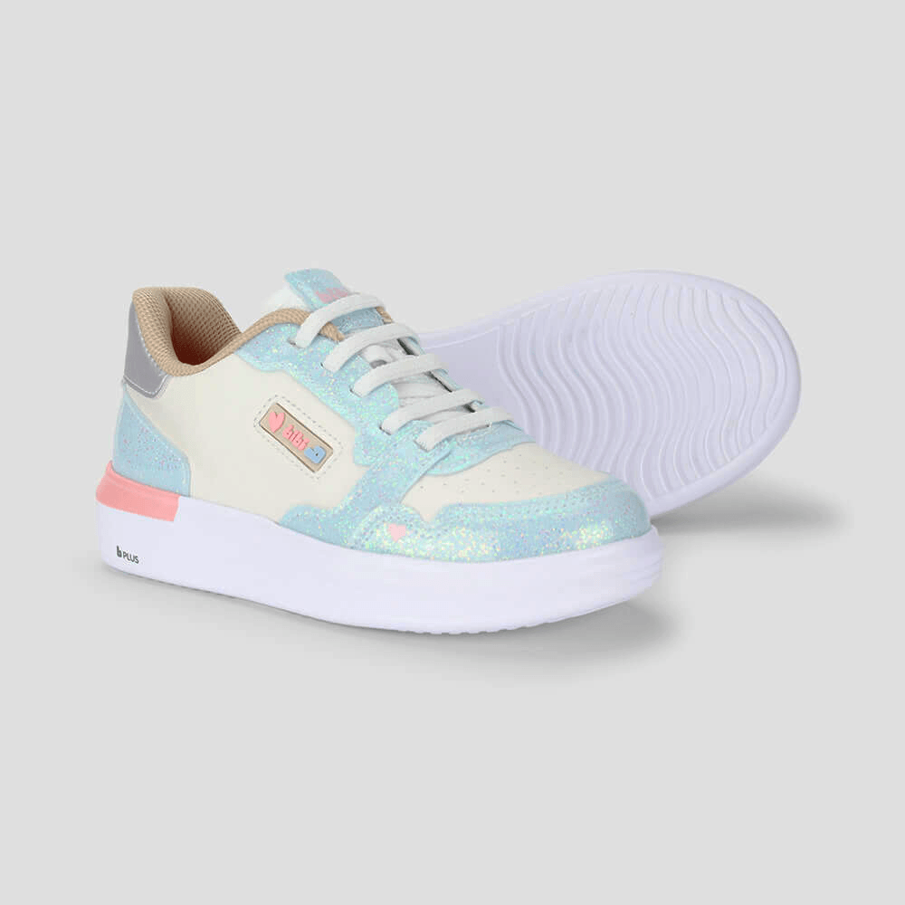 Tênis Infantil Bibi Glam Branco com Azul e Glitter