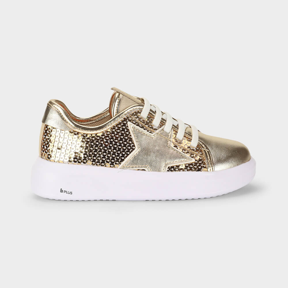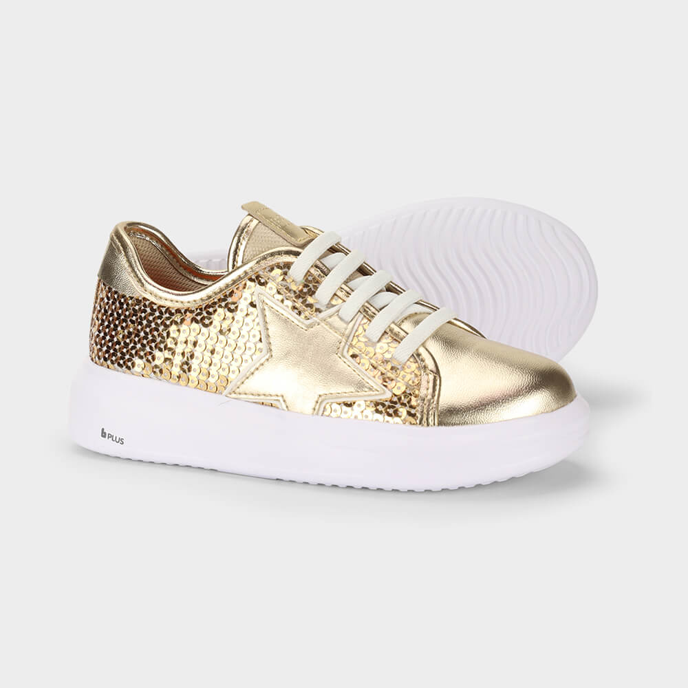 Tênis Infantil Bibi Glam Dourado de Lantejoulas