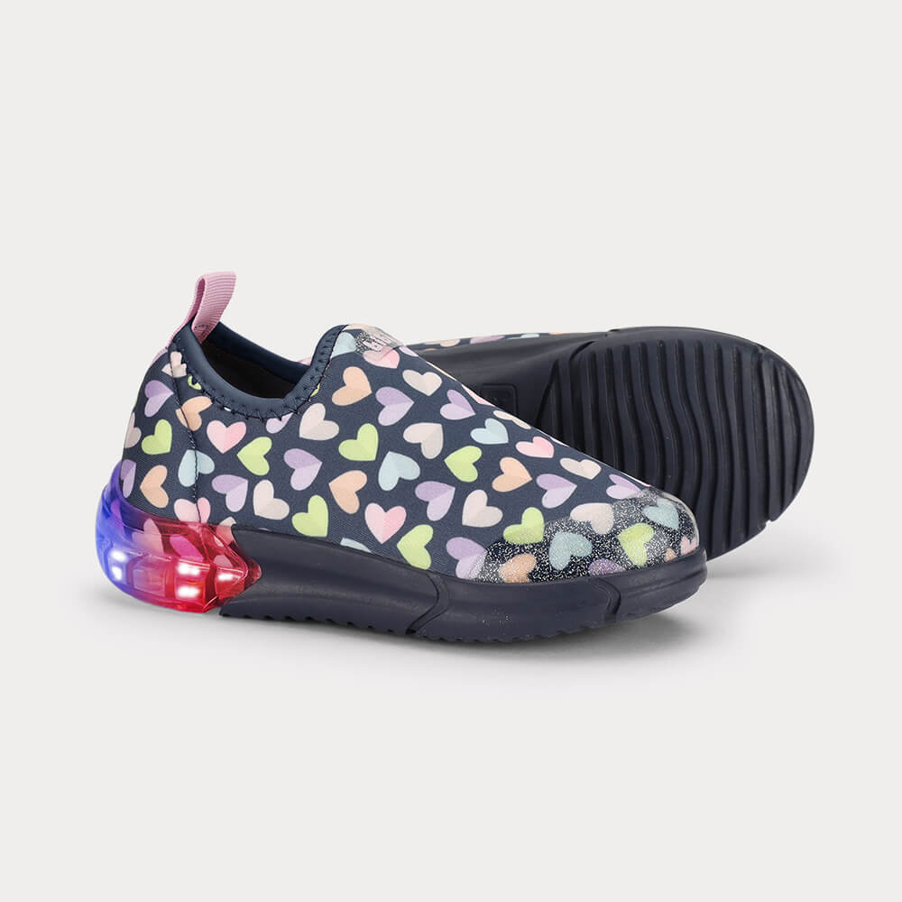 CalçadosMeninasTênisLuzTênis Infantil Bibi Space Azul Marinho de Corações